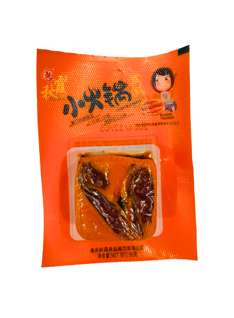 想隨時隨地品嚐重慶麻辣火鍋的香辣滋味?秋霞小火鍋底料 90 公克,專為一到兩人設計。小份量剛剛好,不用擔心浪費,簡單加水煮滾就能享受熱氣翻騰的麻辣火鍋。