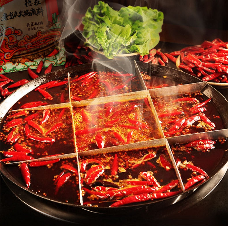 1999年創立於重慶的德莊,是川渝火鍋底料的代表品牌之一。這款牛油火鍋底料以食用牛油為核心基底,搭配辣椒、花椒、豆瓣醬、生薑、大蒜等多種原料,經多道工序炒製,還原道地重慶老火鍋風味。