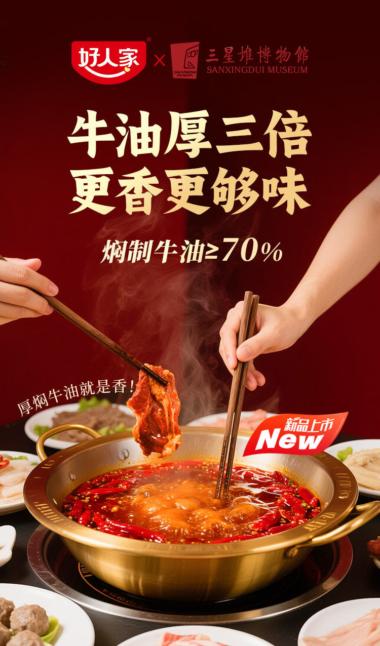 入口可感受到明顯的辣與麻交錯,牛油香氣隨加熱逐漸釋放,搭配食材後風味更加濃厚,屬於偏重口味類型的火鍋底料,適合喜歡川味料理的消費者。