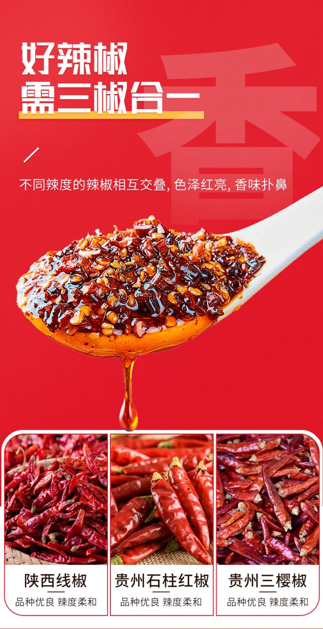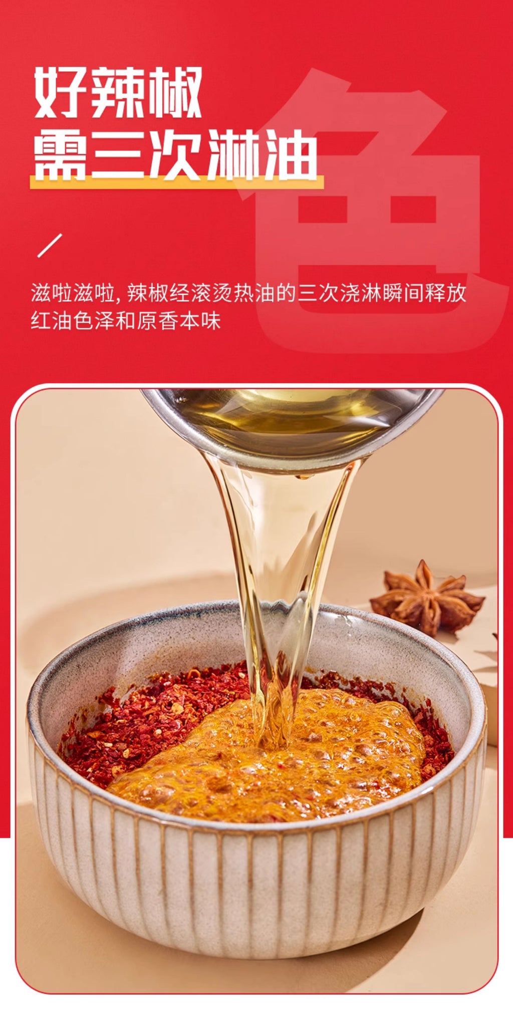 A:這是專為拌菜、拌麵設計的紅油辣子調味料,花椒與辣椒比例調和,香味層次更豐富。