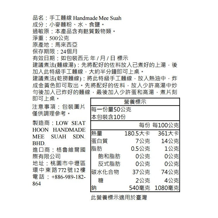 品牌:劉家麵線(Liu Jia Mian Xian / Low Seat Hoon Handmade Mee Suah)