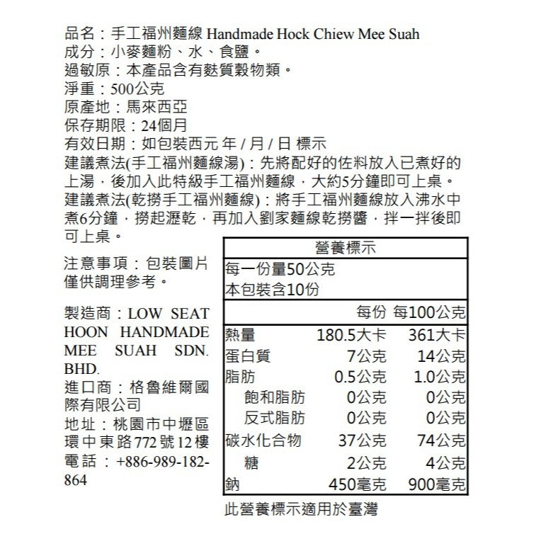 製造廠商:劉家麵線(馬來西亞柔佛州麻坡廠)